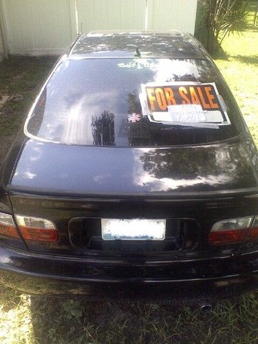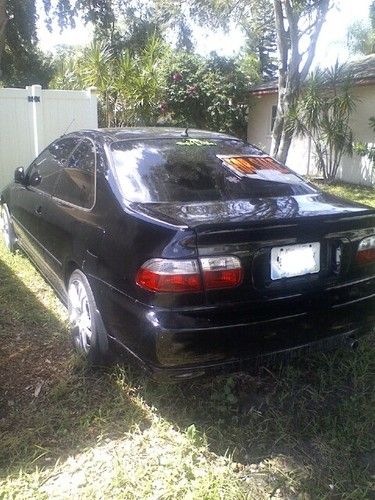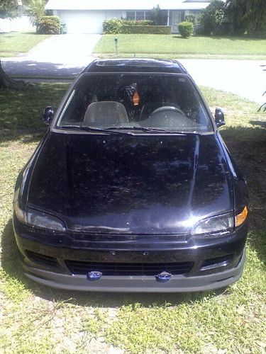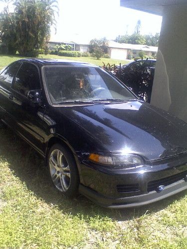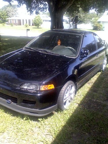 LOCATED IN BRADENTON, FL, NOT LOUISVILLE, KY. 1995 Honda Civic EX Black Coupe Manual 5 Speed 120,000 on replaced engine kept alive with Lucas oil additive. New drain and fill on transmission also with Lucas additive. New brake booster, new battery, new front brakes, new exhaust, new rear shocks, new compressor with new dryer / evaporator / lines / O-rings. Exterior good / Interior good. Stock wheels and aftermarket wheels included. Stereo included with 4 aftermarket speakers with amp hookups in rear. Upper and lower stress bars included for handling and body roll/stress when taking quick turns. Full exhaust with aftermarket chrome exhaust manifold / header included. Cat replaced with cherry bomb. Fully electronic including cruise works perfect. D16Z6. Comes with fog lights and very loud duel horns. This car is not lowered and has stock suspension. This means the ride is not stiff but very responsive. Comes with wheels in picture and stock steel wheels with tires in great condition. Very comfortable, fast, and fun to drive. Pickup is in Bradenton, FL, not Louisville, KY. One Thousand due in 48 hours for deposit, cash upon title transfer. Email me your number and I should get back to you within twenty four hours. Thank you for looking and god bless.