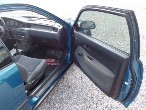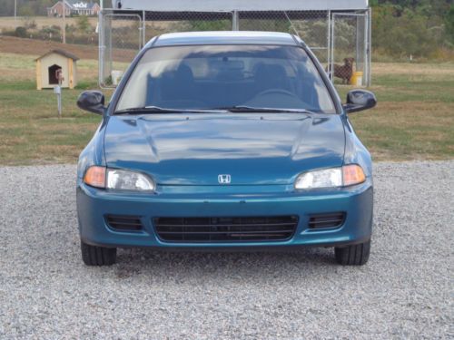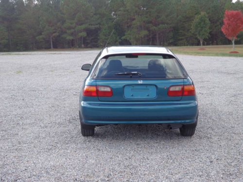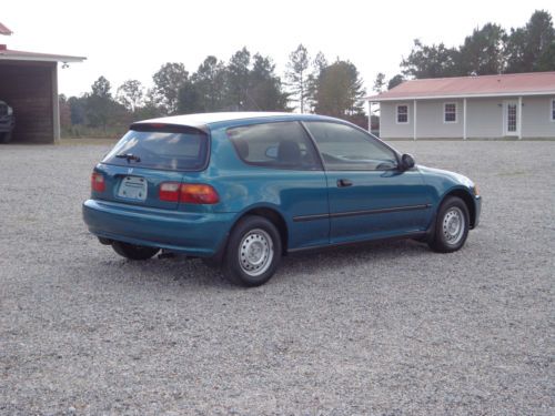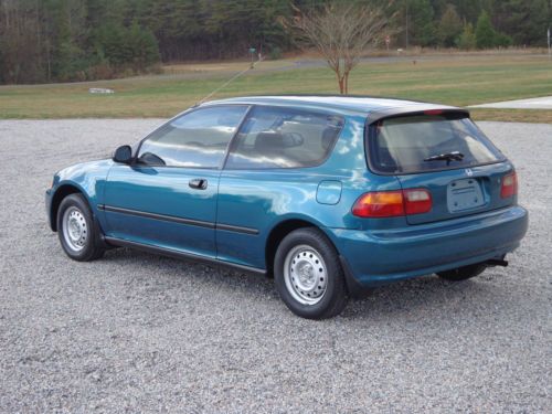 This is a stock Civic other than a CD player, door speakers and tinted windows. It is a 5 speed manual transmission with manual windows and door locks which come standard on a DX. The car has Michelin tires which are 2/3 new. Car had a timing belt, water pump and valve seals replaced less than 15,000 miles ago all done with genuine Honda Parts. The exterior is in excellent condition as well as the interior with the exception of one spot on the driver's seat as shown in picture. It is great on gas, averages 38 mpg around town and 42 mpg highway. Any bidders with zero transactions must contact me prior to bidding or your bid will be cancelled. $500 deposit due within 24 hours with balance remaining due in 3 days. Deposit can be paid using Paypal but remaining balance due in cash, cashier's check or money wire only. Buyer is responsible for pickup/shipping. |