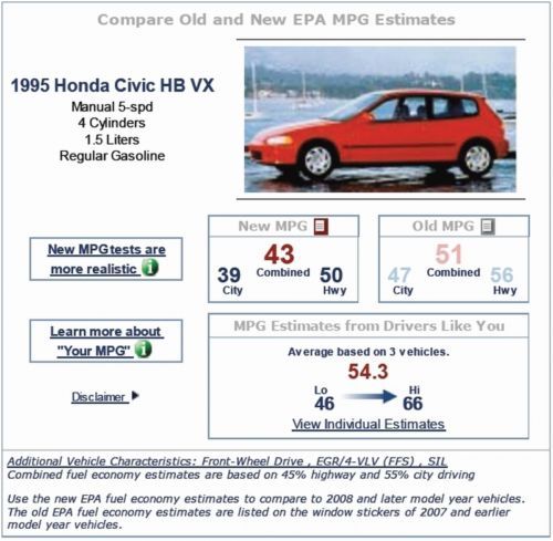 1995 Honda Civic Vx Hatchback 3-door 1.5l - 55 Mpg!!!! on 2040-cars
