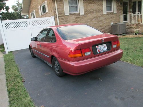 Here is my 96 Civic. I've been a technician for Honda/Acura for the past 10+ years. I bought this car with every intention of keeping it forever.Cosmetellicy it's in really nice shape for it's age.Has some dings and dents/scratches but it's what you would expect from a car of its age.Paint to my knowledge is all origonal.Has one rust spot on right rear quarter near rear bumper which is a common problem on these. The inside of motor is clean and shiny when you look inside the oil cap, prior owners took really good care of it.thats why I bought it.The transmission fluid was nice and pink when I bought it but I still always changed the ATF with every oil change every 2k miles. Why? cause I can...lol dosen't leak a drop of any fluid. i love these cars and they last forever If maintained properly. Here's a list of the factory OEM parts Ive installed on it the last two years.and a good estimate If you went to the dealer to get the work done. New Ignition: cap,rotor,plugs,wires $250 labor $150 Timing belt,water pump,drive belts and coolent. $500-600 A/C condenser $150 labor$180 A/C blows ice cold rear brake shoes and turn drums $300 Brake fluid flush $100 P/S flush $100 Induction service and scrub out throttle body gum $180 4 new tires and four wheel alignment$300 labor $160 Aftermarket stuff 2 6x9 Pioneer 3 way speakers in the rear tray.. 2 6" pioneer 2 ways in front sound awesome $200 labor ?? Skunk 2 lowering springs. $175 just for the springs exhaust down pipe and mid pipe $225 labor $160 aftermarket Radiator with oem thermostat and upper and lower hoses $200ish labor $200 these are just labor prices if you had the work done.I do this type of a work for a living so i'm really just in it for the parts but still my personal labor is worth something.....right? I know i'm probaly forgetting some stuff but thats about it. bunch of money in this car and it was restored by me a ASE certified factory trained Honda Technician to be a perfect daily driver. I would hop in this car and drive it anywhere with no hesitation whatsoever. I've been on many 300 mile round trips to New Jersey and West Virginia with not even a hiccup.I never intended on ever selling this car and I hate to part with it but due to "life happening" and owing my lawyer a bunch of money I have to sell some stuff. feel free to come see it anytime. first person with a reasonable offer and cash gets to take her. Anthony 443 422 5812