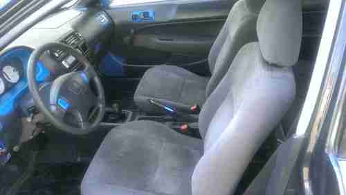 Up for sale is my 1998 Honda Civic Dx coupe with 5 speed manual transmission. I am the second owner of this car and it has been my baby for the past 8 years. With 160,000 miles, this civic has not once seen the inside of a repair shop for any reason. Car runs flawlessly with no leaks, sounds, smoking or burning of oil. The car shifts into every gear perfectly with a strong clutch. Paint job is about 4 years old and still looks great. There is only some minor chipping on the front end from normal wear and tear. Last year a tree fell on the hood and dented it (see pics) but did not remove clear coat or paint. Interior of the car has been extremely well kept. I removed the old carpet and headliner so they will need to be replaced ( very easy and cheap to do) Other than that the seats and dash have are in excellent shape. The engine runs very very strong, I have literally never had a problem with anything. No modifications have been done to the engine whatsoever. The vehicle is inspected until December and I have the title in hand. Check engine light comes on every now and then do to an O2 sensor from when I had the exhaust installed. This is a real easy fix, just never got around to it, does not effect the cars performance at all. This would be an awesome project car for Honda lovers or a great first for someone who just needs a reliable, gas efficient car to get them from A to B everyday without fail. I really hate to let her go but I'm too old to be driving it anymore. This car has easily another 100,000+ miles of life left. I swear this thing is indestructable. Below is everything I can think of that the car has as well as any problems. Please don't waist my time and yours. I know how Ebay works so I am only giving my number to serious buyers. Car is being sold AS-IS with no warranty. Everything I have written is honest and the pictures are very clear and accurate. Previous owner was in very minor rear end accident which you will see on carfax. no frame damage or anything to worry about at all. Title is clear. Thanks