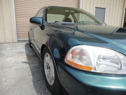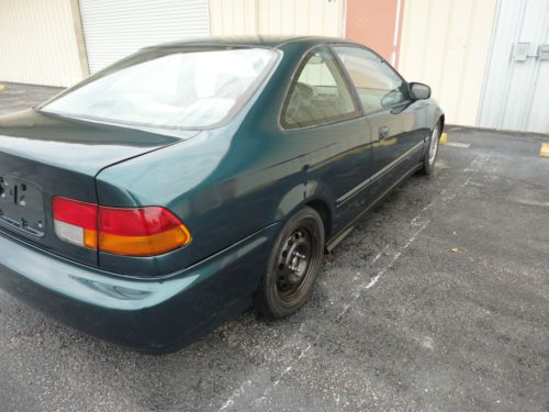 Here you have for auction a 98 Honda civic coupe shell / rolling chassis with a clean Florida title. Its a original 5 speed manual car. The car was my project car but I no longer afford to continue it The car is ready for any swap. The shell was professionally painted 6 months ago along with the engine bay. The car was painted the stock color cypress green metallic on the outside and the engine bay was done with a custom teal metallic. The car has zero dents, chips or fading going on looks excellent has great shine. Also has brand new headlights. The car is riding on coilovers all around and has adjustable upper control arms in front and rear camber adjustment as well. It has 3 EF civic wheels and 1 steelie. The interior is clean no cracks in the dash, has a brand new windshield but the door panels are not in the best of shape common issue for these year civic but there sturdy.Its missing the passenger seat but the rear seats and driver seat are there and in good shape. The manual window regulators work perfect and smooth and the carpet is clean no rips or burns. Overall its a great project all you really need to do is drop in a swap and ride. I got 1300$ in paint alone so this is a great deal the reserve is set a 1600$ any question feel free to text me at 407 427 -6557 thanks enjoy. |
