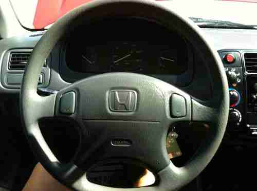 For sale is a 1999 Honda civic hatchback DX in red. It has had one owner since it was first purchased in 1999 and is in remarkable condition. It is a manual transmission with around 204,000 miles on it and it runs well with getting good mileage. It still runs very smooth and has been serviced multiple times before being put up for sale, the A/C was replaced and it blows cold, brakes serviced, new clutch, and transmission was completely rebuilt. It has a cassette player, CD player, and good interior lighting. The exterior of the car has a couple dings and scratches in the front with a flawless interior (as seen in pictures) the speakers were also serviced when the whole car was cleaned but the hood latch broke off which is common in the old Honda civics (can just be glued on) It really is a great little car in good condition, feel free to ask additional questions or for more pictures.