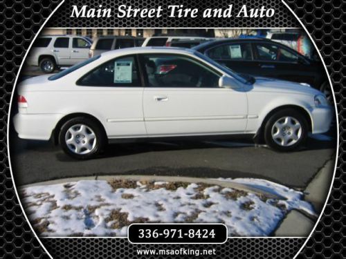 Super nice Civic EX coupe. Perfect for that teenager turning 16. Local trade-in at Modern Chevrolet. Financing options available. www.msaofking.net 888-863-5486 This Civic EX Coupe is loads of fun! Go ahead, take another look at our stellar pictures and imagine how good this coupe will look in your driveway! Our 1999 Civic EX gets it's power from a 1.6-litre engine that kicks out 127 horsepower and should return over 30 mpg on the open road...as long as you've had that lead surgically removed from your foot! Yes, this is an older model Civic, but you'd never guess it judging by how well this cream puff has been cared for! It's nearly flawless inside and out! Really - look at our pictures and you'll agree! Print this page and call us Now... We Know You Will Enjoy Your Test Drive Towards Ownership! Visit Main Street Tire and Auto online at www.msaofking.net to see more pictures of this vehicle or call us at 888-863-5486 today to schedule your test drive.