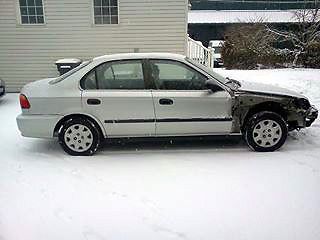 All 4 tires in above average shape. It's a 5-gear manual transmission. The ONLY damage is to the right quarter panel (came off due to the accident and the front right headlight and blinker are missing); however, everything else with the vehicle is in above average shape, including the interior. This vehicle would be a good fixer upper for a mechanic or someone that enjoys fixing cars as a hobby. It would also be good to sell the parts off, as I know a profit IS to be made. Are you asking yourself, "well then why isn't SHE fixing the vehicle or selling off the parts herself?" That's a very good question and I do, in fact, have a great answer. I simply DO NOT have the auto knowledge to do either of these things - which is what led me to eBay. Please don't hesitate to ask any questions, as I WILL BE honest with you. Thanks for your time. Connie L. Anstaett, Cincinnati, Ohio |