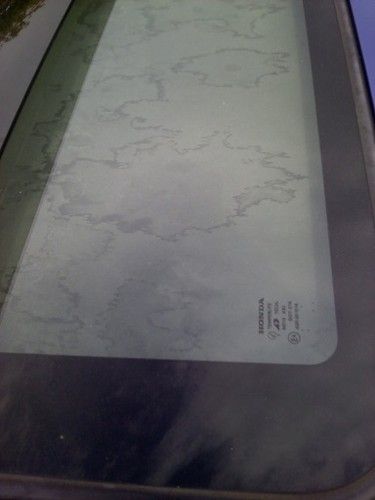 Windshield has a couple cracks, couple minor dings as pictured, also condensation stain below the moonroof but above the cover(assuming the top was left open one night?..(photo)..that way when we bought it, doesn't affect operation).