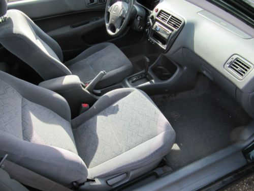 2000 Honda Civic EX 2 door Up for sale is a 2000 Honda Civic EX the car has a clear and clean title. I bought the car as a project and now with a new baby I need something bigger. When I got the car it had some front-end damage but no structural damage. This is what I have done so far: (Note: I have included pictures of the old parts so you can see what kind of damage the car had. Just cosmetic damage.) All parts were purchased in the last year New windshield New Suspension: New front upper control arms new bushings and adjustable ball joints, New rear aluminum lower controls with new bushings New coil over sleeve kit with new springs New Adjustable camber kit New front and rear struts/shocks by Lo Tek for lowered cars I just had a four wheel alignment done. New headlights & grill New fog lights (not hooked up yet) see pictures Tune up and smog done New spark plugs, wires, cap, rotor, gas filter and air cleaner. New inner bumper New timing belt kit: Kit included timing belt, new spring, new water pump New Belts, A/C belt, alternator belt and power steering belt New oil pan gasket and valve cover gasket Speakers: Front speakers need to be reinstalled (original owner had some aftermarket speakers) New Hood, bumper, left & right fenders and left mirror Used drivers side door The car comes with the stock rims/tires and a set of Acura LS “mesh” wheels with tires. The stock tires have good tread and three out of the four tires on the Acura rims are good. (see pictures) The only bad things about the car are the A/C does not work( needs a new compressor) The paint does not match, the front speakers need to be reinstalled and there is some marks on the carpet. If you have questions feel free to email me. |