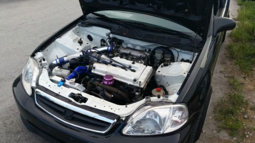 Sup every one, you are looking at my 2000 Civic Ex, car has a lot done to it so I will try and list all that I can knowing Im going to forget some stuff. First off the car is a REBUILT TITLE dew to a flood. Not accident related. I bought the car at the auction in 2012 and I did everything on the car myself since I got it. I have all the original paper work from the auction for proof of the rebuilt title. UNDER THE HOOD - Ls/Vtec on Boost ( completely rebuilt engine alone spent $3k + about 5k miles on engine since build, i dont drive the car much) - B18a1 block bored over to 82mm with block guard - Wiseco 82mm forged pistons - Eagle forged rods - ACL race bearings - ARP head studs - B16 head - Honda oil/water pump - AEM fuel rail with 450cc RC injectors - Turbo is a ebay turbo. Had it for 2 years ( no shaft Play) currently on 8Psi but can easily go up to 21Psi no problem) - Chipped P72 and a Vafc for engine control ( Street tune and Pushing low 300 Hp as of now ) - Hks bov & Emusa wastegate - 3 Down Pipe with AEM Wideband attached to it ( also got a electric Y pipe on there but I unhooded the motor but still works) after the Y pipe its 2.5 all the way back to the muffler which is a Greddy Evo - Ls Transmission NO GRINDS NO POPS , 8 pound flywheel and Apexi clutch and pressure plate - Aluminum 2 row radiator with slim fan - Silicone blue cooling hoes ( all around) - Has power steering and ac but the compressor is currently leaking, would need new compressor or you can take the ac out completely if you want. - Painted white engine bay with wire tuck and fuse box relocated under the dash. - Battery relocated to the trunk as well.