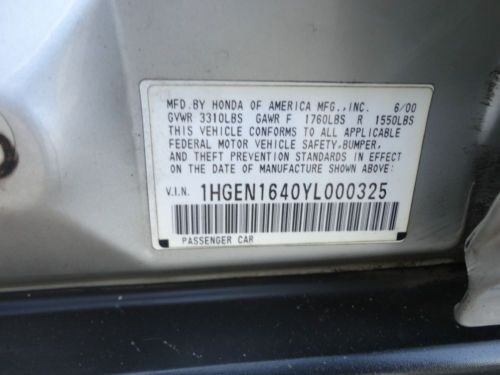 2000 Honda Civic Gx Cng Ngv Natural Gas Sedan Hov Solo One Owner Gov't Fleet 41k on 2040-cars