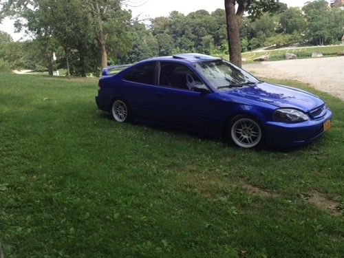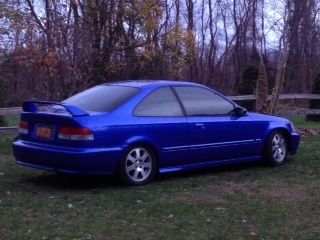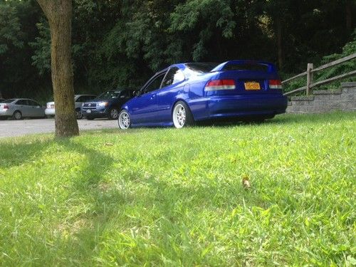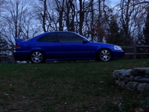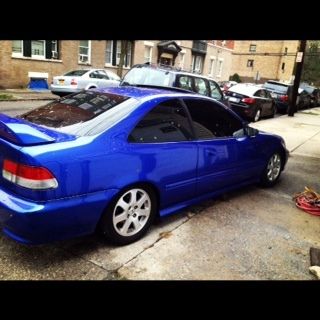 Im selling my 2000 honda civic si.This car is in mint condition with no problems what so ever. this car was professionally re painted about 6 months ago it cost me 3800 dollars with the recite to prove it .i have installed blue s2000 leathers seats.i installed spoon carbon fiber mirrors. This car has a b18 motor with a gsr tranny equipped with LSD. it has a clutch light weight fly wheel skunk 2 short shifter a walbaro fuel pump and much more . this car is a must see ! The rims have brand new tires. it does Not have ac or power steering . the dash board lights are not working at this time . the fuse blew and i never have time to changed them simple fix other than that this car is mint and needs nothing . only reason why im selling it is because i have to many cars and never get to drive it .if you have any questions you can email me . this car is being sold as is. it is for sale in my area also so i have the right to end this auction early if i sell it before the time period is over. this car is a beautiful car witch gets alot of attention and compliments when i bring it out . this is a great gas saver! This car is being sold with the white rims in the first 3 pictures thats how that car looks now. if you have zero feed back you must email me first!