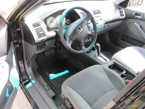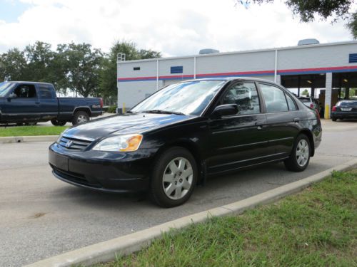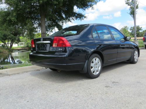 This black 2002 Honda Civic EX is in great condition. Cold A/C, Sunroof with power opener,new transmission, great fuel mileage with 4 cylinder, 1.7L,VTEC engine. Gray interior in good shape with no seat damage. This Honda is ready to drive home from Orlando Florida.