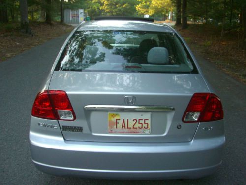 2003 HONDA CIVIC EX SUPER FAST! DRIVES AND RUNS AWESOME You are bidding on a 2003 Honda Civic EX 4 door sedan, excellent condition. The car has a CLEAN title. The car has 181724 all highway between Boston-New York on it and runs drives very nicely. The 4 cylinder motor fires right up every time, automatic transmission shifts good. The car gets 35 + mpg and even better if you drive it with a soft for gas pedal. Vehicle has been manteined with every 3000 miles oil change, transmission fluid and air filter. Runs very good EXCELLENT SHAPE!! It has power windows, sunroof, power locks, CD player, good tires, good brakes, power steering, power mirrors, cruise control, cold a/c, It is ready to go. Drives down road very nice, the car doesn't have any strange habits, no smoke or oil drips, very REALIBLE little Civic. Seller is an adult, non smoker, no pets inside and the car has been well cared . There are a 2 small rustic, one in the hood, another in right rear very small, but nothing major, the car has had basic tune up service done at HONDA DEARLERSHIP and everything checked out great, drive anywhere without issues to me. Look at the pics and see for yourself. GOOD LUCK, car is selling as is where is, there are no warranties implied expressed or given. Car must be paid for and picked up withim 7 days of auction close. If you have the car transported, buyer to pay all transport fees but I will help out in any other way that I can. If you drive the car home I can pick up the winning bidder at the airport, Boston or Providence, please email if you have any question or would like to see the car, thanks for looking and GOOD LUCK! |