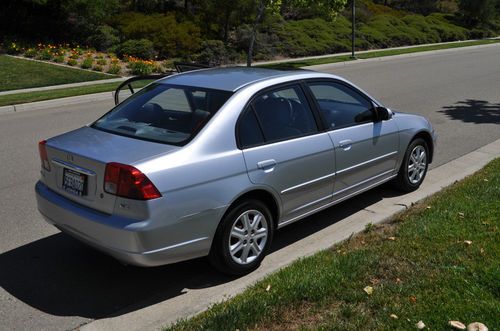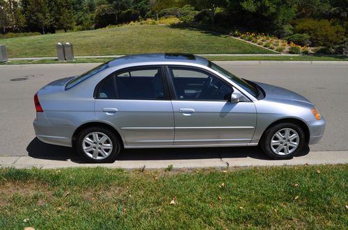 2003 Honda Civic: leather interior, sun roof, new tires, 36mpg, CD player and A/C, SRS, Airbags, ULEV rated, ABS etc... Excellent condition and maintenance done on schedule according to Honda specifictions. Garaged quite a bit over the last few years. Great car with Honda reliability/durability.