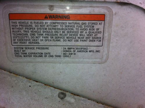Exterior Paint has most of its factory shine and glistens in the sun as you can see. No major/large dents or rot on the body. The bumpers have some scrapes, marks and gauges. There are minor blemishes on the trunk and hood as shown in the photos. Aside from the minor blemishes, the body is overall straight as you can see. Please keep in mind this is not a showroom new but in very good condition for the year. Interior Interior is in very good condition with minimal wear. Seats and floor are not ripped or shredded. No tears in seats. Dashboard is NOT cracked or faded. Inside is fresh and clean. Wheels and Tires · Tires have approx 60-70%+ tread remaining. Full set of Honda factory alloy rims. CNG System I have fueled up with CNG many times with no problems. No evidence of any leaks. Everything looks to be in order and system holds pressure as it should .The CNG tank expires 02/18. I have test driven this vehicle over 600 miles and it should have no problem going anywhere. I do advise that long distance buyers use a transport service to move vehicle rather than drive due to the availability of CNG stations in some states. As I recommend to all my customers, you should have your mechanic look over any newly purchased vehicle before extensive use. I have tried to list as many details about this vehicle as I can, including known defects. There may be deficiencies that I am not aware of so buyers are encouraged to inspect in person. This was previously a fleet/lease vehicle and may have greater wear and tear than private vehicles. Vehicle is otherwise sold as-is and where is with no warranty express of implied. If you are local I encourage and welcome you to come down and test drive the car for yourself or have an independent inspection completed PRIOR to bidding. I am happy to answer any questions so feel free to e-mail me or call. There will be no price adjustments or cancellation of sale for failure to do so. · Payment Details A non-refundable deposit in the amount of $500.00 must be made via PayPal within 24 hrs of auction's close. Balance to be paid within 3 days via certified/cashier's check from a verifiable institution with local branches only, US postal money order preferred(no other's will be accepted due to counterfeit MO's going around), or cash (in person only, DO NOT mail cash). A document fee of $150.00 will be added to the winning bid price. If you require documents to be mailed please add $20 to final price for overnight service. Item must be picked up within 10 days of auction's close unless you make other arrangements with me. If not, buyer agrees to pay $20/day storage. Sorry but I can not have vehicles sitting here for weeks or months. IF DEPOSIT IS NOT RECEIVED WITHIN 24 HRS OR PAYMENT IS NOT RECEIVED WITHIN 3 DAYS, VEHICLE WILL BE RELISTED OR SOLD TO NEXT BIDDER. Shipping Shipping is at the expense and responsibility of the winning bidder. If you require shipping, I am happy to assist. Vehicle is located in Dallas, Texas 75287 If you wish to fly and drive, I can pick you up at either DFW or Love Field. Legal Info Please only bid if you have the funds available and intend to complete the transaction. Ebay is a great place and you guys are wonderful but the occasional fraudulent bidder ruins it for everyone. Non-paying bidders will be reported to eBay as well as the appropriate authorities as interfering in interstate commerce is a federal offense. If you have negative feedback please contact me if you wish to bid or your bid(s) will be canceled. By bidding, you agree to all the terms of this auction. Item is sold as-is where-is with no warranty or guarantee. If you are local, feel free to come and inspect the vehicle in person. I have tried to describe this item as best I can but I am not responsible for any incorrect information regarding specs, condition, technical issues, or undetected problems, etc. I am happy to answer any and every question so please e-mail prior to bidding as all sales are final. I reserve the right to end auction early as vehicle is for sale locally. Useful Links: CNG Station Locators |