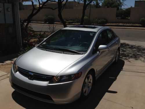Ice cold A/C; cruise control; remote keyless entry with two keys; security system; all scheduled maintenance, including regular oil changes; all vehicle manuals and records; moonroof; navigation System; cd/mp3 player; power windows and locks; digital speedometer; non-smoker and no pets; title in hand; very clean interior; satellite radio ready; auxiliary input for electronics; and just installed a new starter a month ago and four brand new Michelin tires two months ago. Minor cosmetic blemishes that come with living in Arizona (i.e. small paint chips/scratches, one dent the size of a nickel on the trunk); a few scratches on passenger side interior dash (there when I bought the car--I am the second owner); minor rear fender bender (fully repaired) and no frame damage; Overall, this Civic is nearly pristine. Private sale, so no sales tax or dealer document fees! Price firm. Wire transfer, local cashier's check, local money order, or cash only. No PayPal. Buyer must arrange shipping or pick up the vehicle. |