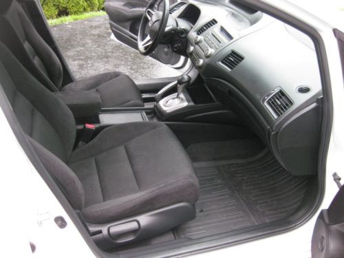 2011 Honda Civic LX-S, White Color, Auto transmission, approximately 69xxx miles, well maintained, regular oil change, automatic transmission fluid changes, air filter & cabin filter regularly changed according to maintenance minder. LX-S version offers leather wrapped steering wheel, a sportier package with alloy rims, nicer cloth seats, and trunk lid spoiler. I also added genuine Honda All Weather Floor Mats for front & rear which is awesome during winter, doesn't damage or stink up the carpet from all the snow & mud; added genuine Honda Fog Lights with the proper switch on the light stalk not an aftermarket, this makes it brighter for night driving. This was added costs. Tires have a lot of life on it, gas mileage is awesome on this car. It was my commuter car as I drive very far to work. However, I switch jobs and no longer need a commuter car as I will be using mass transit. Car is very well cared for even though I put a lot of mileage as I like my cars. Auto Windows, Auto Locks, 2 sets of keys, Owner's manual, spare tire & jack. A/C runs very cold and works very well so does the heater, nothing wrong with the car. Rear seats fold down completely so you can carry a lot of stuff. Clean Title, Never been in accidents, minor rock chips from highway driving, overall a great car.