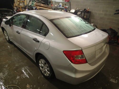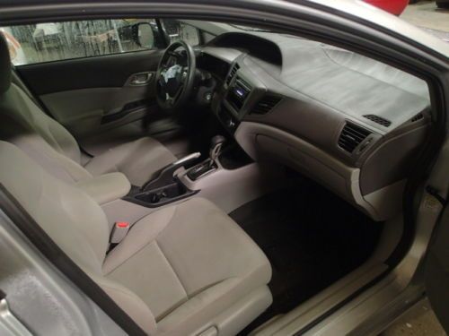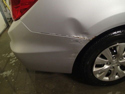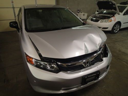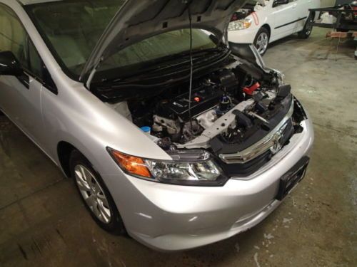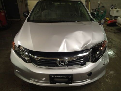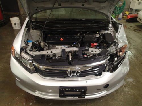 Hello you are bidding on a 2012 Honda Civic DX with 19,394 miles. The car runs and lot drives fine. The car sustained a high hit above the rail on the left side. The cars interior is in good condition. The car will need left fender, hood, left headlight, radiator, ac condenser, radiator core support, driver bag, front bumper cover, grille, misc clips and mounting hardware. The left inner structure does have some damage were the core support welds in, but can be repaired no problem. The front bumper cover maybe savable, has some minor damage on the left side. The Car is available for inspection please feel free to contact me at 502 817 2972 with any questions you have. The parts are available used at car-part or on www ebay com. The right quarter panel does have some minor damage on it but can easily be repaired. The car is being sold as is damaged. Full payment due within three days of close of auction.