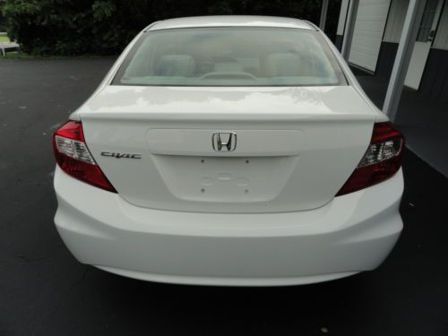 Up for your consideration is a 2012 Honda Civic EX-L. It is fully loaded with power windows, power locks, leather interior, sunroof, factory floor mats, and is extra, extra clean. The vehicle was involved in a minor rear-end collision, in which the rear bumper cover, trunk lid, and left rear tail light was replaced. The vehicle was professionally repaired and you cannot even tell it was damaged, and is in amazing condition! There is not one single scratch or dent anywhere on the vehicle. When the insurance company did the paperwork on the title, the odometer was reading in kilometers, therefore; they mistakenly reported the mileage as kilometers, NOT miles. The mileage on the title states 48,011 miles (48,011 kilometers equals 29,823 miles) I am selling this vehicle with 28,823 actual miles, I have included photos to show the odometer discrepancy. The vehicle is being sold AS-IS. If you are not completely satisfied at pick-up, I will refund your deposit and void the transaction. Please bid with confidence and check my feedback. If you have any questions, please feel free to email me.