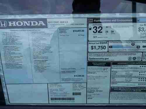 2012 Honda Civic Lx Sedan Brand New Car Runs Excellent Salvage Flood Mv-907a on 2040-cars
