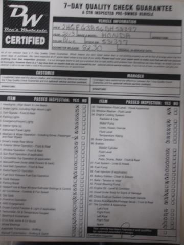 VIN (Vehicle Identification Number): 2HGFG3B56DH531397