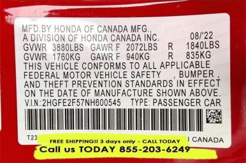 VIN (Vehicle Identification Number): 2HGFE2F57NH600545
