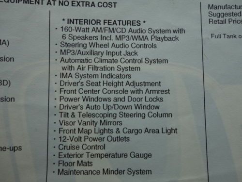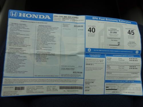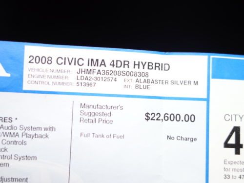 Honda Civic Hybrid Gas Saver Automatic Cruise Cd Free Autocheck No Reserve on 2040-cars
