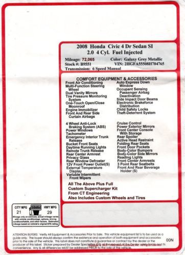 This is a high performance 2008 Honda Civic Si. It is in excellent condition, and completely maintained including brand new tires and a battery. It includes many upgrades and modifications. CT Engineering Supercharger, Stainless Header, Cat-back exhaust, Fuel Rails + Injectors, Complete Air Intake Kit, Short Throw Shifter, and a modified computer. Complete details upon request. |