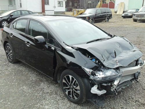 NO RESERVE AUCTION, BID TO WIN BID ONLY IF YOU INTEND TO PURCHASE WRECKED/REBUILDABLE/SALVAGE/PARTS ONLY 7807 MILES 2013 HONDA CIVIC EX FWD 4 DOOR SEDAN 1.8L DOHC AUTOMATIC TRANSMISSION 17 INCH ALLOY WHEELS BACK UP CAMERA REMOTE KEYLESS ENTRY POWER SUNROOF VERY LOW MILES 7807 VERY CLEAN CAR WITH THE EVER RISING COST OF GASOLINE...HERE IS YOUR CHANCE TO BUY AND OWN A LATE MODEL, SUPER LOW MILE, FUEL EFFICIENT CAR AT A FRACTION OF THE COST. AVERAGE COST OF GASOLINE IN THE UNITED STATES IS AROUND $3.50 PER GALLON. IF YOU COMMUTE TO WORK OR DRIVE ALOT OF MILES PER WEEK THIS IS YOUR CHANCE TO START SAVING ON FUEL COSTS... PLUS... IT'S A HONDA $$$$ SAVE BIG $$$$ THIS IS A NO RESERVE AUCTION AND WILL BE SOLD TO THE HIGHEST BIDDER.. DAMAGE TO FRONT CAR DOES START, RUN, AND MOVE CAR IS VERY CLEAN BLACK EXTERIOR, BLACK CLOTH INTERIOR, ACCIDENT DAMAGED TO FRONT. LEFT AIRBAG DEPLOYED. THE REST OF THIS CAR IS NEAR SHOWROOM CONDITION. NO DINGS, OR SCRATCHES..... TIRES ARE LIKE NEW IF YOU HAVE ANY QUESTIONS ABOUT THIS CAR PLEASE ASK.. **MILEAGE IS ACTUAL ON SALVAGE CERTIFICATE** 7807 IS THE TRUE MILES OF THIS CAR NO RESERVE AUCTION, BID TO WIN
