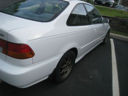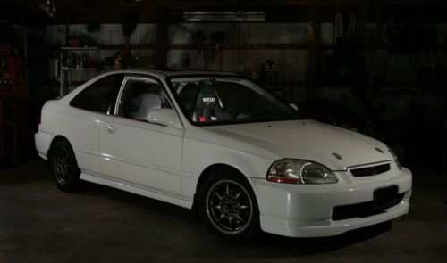 History: I purchased the vehicle new in 1996 from Bellevue Honda in Bellevue (Omaha), Nebraska. The car was always garaged in the snow belt and rarely driven in winter. I kept the underside washed all the time when/if it was exposed to snow. I then lived in Phoenix, AZ for 5 years (no rust obviously) and finally here in SW Ohio but only drove it a few times in snow here as well. The car was pictured in Sport Compact Car magazine as it was the cover vehicle for the Honda Hybrid web page for a few months in 1998. It has had several upgrades since then as you can tell from the lists above. The engine had just over 33,000 kilometers on it when installed and the car had 40,000 miles. I have never drag raced the car. I did run the car on Laguna Seca with street legal tires and Honda OEM pads. Fast lap was 1 minute 52 seconds and that was prior to limited slip being installed. I also had the pleasure of driving it to and in performance driving schools at Gingerman Raceway, Phoenix International (road course), Buttonwillow, Willow Springs, Second Creek Raceway (no longer exists in Colorado), Brainerd International and the Las Vegas Speedway (road course). On street tires I would average 38MPG at 75MPH. Car comes with it's 2 original keys and an Alpine remote. Unfortunately I have not been be really using this car for the purpose it was built for quite a few years. As you can see, no cheap parts were ever put on this car. I was even married in it! |