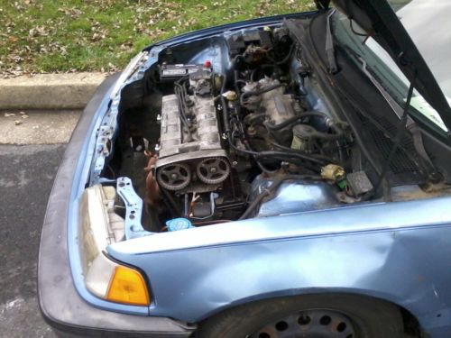 theres a dent in the hood and drivers side quarter panel. theres rust at the rear quarter panel. it needs a exhaust system. It has a b18 in it wired by je imports, hasport shift link, and it has lowering spring with adjustment sleeves. the engine runs but does not go into gear.