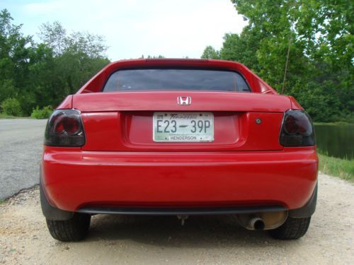 1993 Honda Del Sol si 1.6 liter motor automatic transmission 141,000 miles power windows power mirrors tinted windows cruise control cd player Aftermarket smoked tail lights all four tires are like new brakes are like new a/c is ice cold top does not leak The car has been exceptionally well maintained. All of the following were installed new, I have included dates and have all receipts as well: fuel pump and fuel filter 6/25/2014 distributor 3/27/2014 rack and pinion and tie rods 4/12/2012 rear trail arm bushings 4/12/2012 brake master cylinder 4/12/2012 timing belt and water pump 3/2/2012 front and rear struts 3/12/2012 stabilizer links and bushings 3/12/2012 oil pan and gasket 2/24/2012 The only bad to speak of is a tiny spot on the driver side fender (see picture) and the back bumper could use a tiny bit of touch up paint (see pictures) The only mechanical problem at all is the brakes seem a little soft. They stop the car perfectly well but they travel closer to the floor than I think they should. The master cylinder has already been replaced and all four calipers have been bled. No air whatsoever in the lines. The fluid never goes down. We just can't figure it out. But AGAIN the car will stop no problem! We just wanted to be as honest about the car as we can. We know how it feels to drive a long way to see something and find things that you SHOULD have been told. The car runs and drives like a new one and is a MAJOR head turner! It is a very comfortable ride with the tinted windows and cold air. But also a lot of fun with the top off and the back window down! This is a really great car. The ONLY reason we are selling is because we had to have a truck. Bid with confidence! |