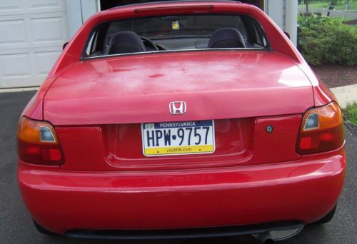 Garage kept 94 Honda del sol si. VTEC 1.6 liter 125 HP Automatic, power windows, power steering, cruise control, AM/FM CD with mp3 hook up. Car does not have A/C. Runs great, does have some rust. See pictures. I have owned for nearly 3 years, recently moved to Florida from Pennsylvania. She gets 27 MPG in the city, 35-40 on the highway. If you are looking for dependable, economical, basic transportation that is a blast to drive, this is your car. Bid with confidence. Satisfaction guaranteed. Bring realistic expectations, it is a 19 year old car. If you are the winning bidder and don't like the car when you come to drive it home, you don't have to take it. I will return your deposit, no questions asked and will not give you negative feedback. I want you to be 100% satisfied. I have clear Pa. Title in hand. Call or text 215-313-7593 for quick response to your questions.