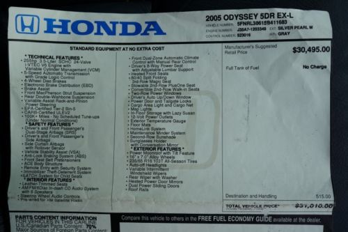 05 Honda Odyssey Ex-l 2 Owner Carfax Cert Leather Htd Sts Mroof Cd Chger Clean!! on 2040-cars