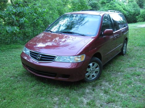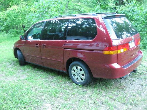 This is a 2002 Honda Odyssey minivan with 170,100 miles (mileage may increase as it is being used occasionally.Itasor 7 and is configured with four leather captains chairs in the front with a leather bench seat for three in the rear. The two front seats are heated and all power. In between the two front seats is a pop-up tray that has two cup holders as well as an area to put food, etc on it. the next two captains chairs are in good condition and each has a retractable cup holder on the side. It has dual power sliding doors for easy access to the rear seats. There are no rips or tears in the leather seats but they do have some wear for a vehicle this age. The a/c and heat work well as does all of the electrics on the car. We are the second owner and were informed by the original owner that all regular maintenance was done as well as the head gasket was replaced at the proper mileage. Though not pictured, the luggage rack bars are also included. The car does have some paint chipping on the hood and there is no rust and the tires have good tread on them. The vehicle is located in Charleston, West Virginia and the buyer will pick it up here. Buyer to pay a deposit of $500 within 24 hours of the end of the auction.