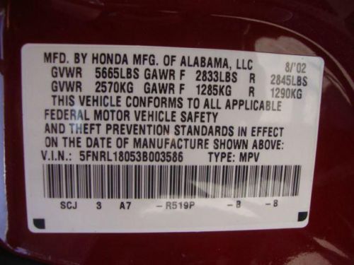 VIN (Vehicle Identification Number): 5FNRL18053B003586