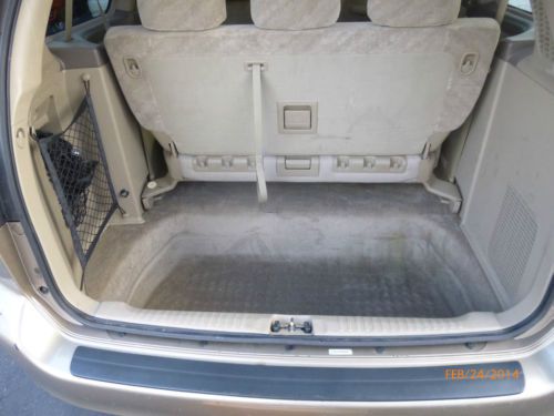 PLEASE NOTE: BIDDERS WITH ZERO FEEDBACK, PLEASE COMMUNICATE WITH ME PRIOR TO PUTTING YOUR BID OR THAT BID WILL BE CANCELLED. I RESERVE THE RIGHT TO END AUCTION EARLY AS VEHICLE IS OFFERED FOR SALE LOCALLY. Thank you for looking and Happy Bidding! Please be advised of known minor issues: 1. Right front door may need a power lock actuator. Makes buzzing noise when locking/unlocking. 2. Left sliding door lock is sticky and needs assistance sometimes. May need to be lubricated or aligned. 3. Some nicks and scratches on body and bumper. (Please see pictures) 4. Has 1 keyless entry fob but missing the spare (about $30 on ebay) Engine V6, VTEC, 3.5 Liter Horsepower 240 @ 5500 RPM Torque 242 @ 4500 RPM Fuel Economy N/A Bore x Stroke 3.50 x 3.66 Compression Ratio 10.0 Fuel Type Gas Fuel Induction Multi Fuel Induction Valve Train Single Overhead Cam Valves Per Cylinder 4 Total Number Valves 24 Transmission Automatic Drivetrain FWD Transfer Case - Dimensions Fuel Capacity 20.0 gallons Wheel Base 118.1 inches Overall Length 201.2 inches Width with Mirrors 75.6 inches Width without Mirrors - Height 69.7 inches Curb Weight 4387 lbs. Tires / Wheel Size P225/60R16 Rear Tires / Wheel Size - Turning Radius 37.7 feet Standard Axle Ratio 4.20 Minimum Ground Clearance - Maximum Ground Clearance - Maximum GVWR - Maximum Towing 3500 lbs. Payload Base Capacity - Head Room: Front 41.2 inches Head Room: Rear 38.9 inches Leg Room: Front 41.0 inches Leg Room: Rear 38.1 inches Shoulder Room: Front 62.6 inches Shoulder Room: Rear 61.7 inches EPA Passenger 170.7 cu.ft. EPA Trunk or Cargo 38.1 cu.ft. EPA Total Interior - Truck Bed Volume - |