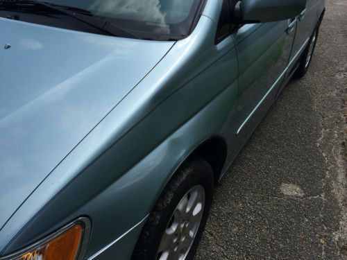 Every mechanical system works on the van, from the cold A/C to the DVD entertainment system. It drives great and still gets about 18 mpg on the highway. You can tell from the photos it still looks very nice. Here are the things you need to know: - the van has been in two accidents, both were minor rear end hits where someone hit the rear of the van. Both times the bumper cover had to be replaced and repainted. The 2nd time they had to replace the rear hatch. The glass didn't break but the metal was dented enough that it had to be replaced. For that reason, both bumpers are near perfect, which is not usual for a 10 year old car. - the power doors work fine, except when you shut them, you have to use the remote or the buttons on the dash, pulling the door handle will not make them shut. - there is a dent on the front drivers side fender, you can see it in one of the photos. A horse got a little too close to the van at a 4h horse show and left a dent. The paint is not damaged. - we replaced the carpet last year (from the dealer), but since then it has stains. What can I say, we have three kids, spills happen. - the drivers front leather seat has a small tear and the arm rest seam is starting to give. - there are rock chips on the hood, you can see these in the photos as well - the car is due for its timing belt change, this is an important maintenance item that should be done as soon as possible. If you are handy, the kit costs $315 from Honda. If you have the dealer do the work, it be around $900 for the service. None of this should be surprising for a 10 year old family van, just I wanted to detail everything you will find with the car so that there are no surprises. I am confident, with regular maintenance, that this car will be a great car for its next owner, as it has been for us. Bid with confidence, I have a 100% eBay rating. |