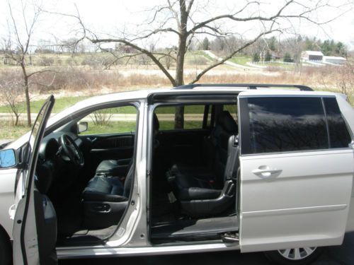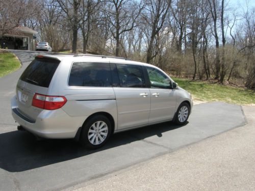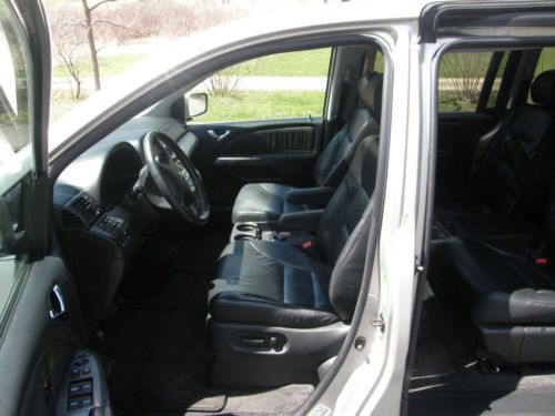 For Sale by Owner 2005 Honda Odyssey Touring Purchased new/One Owner Excellent Condition Some winters in Wisconsin and some in Alabama 78,000 miles Touring package includes: V6, VTEC 3.5 liter Engine (runs on 3 when on level or downhill) Automatic Transmission Power Steering with tilt steering wheel All wheel Antilock Brake System Vehicle Stabilization Assist System Front Wheel Drive Air Conditioning and Heat, zonal with front and back controls Heated front seats Lumbar support in driver’s seat Power Door Locks Cruise Control Dual Air Bags, side air bags front and back Power driver’s seat, with memory. Four bucket seats, back bench seats 3, all are leather. (7 Passenger) Power sliding doors and tailgate AM/FM/Multi disk CD stereo with steering wheel controls. Moon Roof, (power open and close), Roof Rack Console between second row seats Under floor lockable storage Cup holders galore Warning on approaching objects, front and back Inverter with 110 AC outlet. Two 12 volt DC power outlets in dash Duel glove boxes, one lockable, in dash, two more in rear seat. Seatback pouches on all bucket seats Additional Features 2 x 2 hitch receiver. (used for bike rack, no towing) |