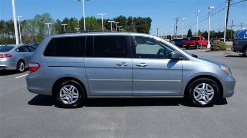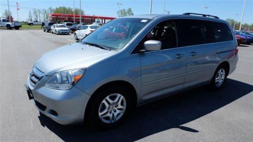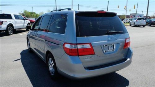 This 2007 Honda Odyssey 4dr 5dr EX-L Van features a 3.5L V6 SOHC 24V 6cyl Gasoline engine. It is equipped with a 5 Speed Automatic transmission. The vehicle is Ocean Mist Metallic with a Gray Leather interior. It is offered As-Is, extended warranty is available. - Air Conditioning, Dual Zone Climate Control, Cruise Control, Tinted Windows, Power Steering, Power Windows, Power Door Locks, Power Mirrors, Leather Steering Wheel, Leather Shifter, Power Drivers Seat, Heated Seat, Roof Rack, Rear Air Conditioning, Clock, Tachometer, Digital Info Center, Homelink System, Tilt Steering Wheel, Telescoping Steering Wheel, Steering Wheel Radio Controls, Moonroof, Driver Airbag, Passenger Airbag, Side Airbags, Keyless Entry, Security System, ABS Brakes, Traction Control, Rear Defogger, Fog Lights, Intermittent Wipers, AM/FM, CD Player, CD Changer, Factory Premium Sound System, 16 inch Aluminum Wheels, Leather Interior Surface,, Compass And Temperature Display, Vanity Mirrors, Overhead Console, Rear Spoiler, Luxury Seats, Carpeted Floor Mats, Aux. Audio Input, Child Proof Door Locks, Center Console, Rear Wipers, Heated Mirrors, Premium Sound, Dual Power Sliding Doors, Tire Pressure Monitor, Rear Spoiler, Cup Holders, Compass And Temperature Display, 3rd Row Seating, Premium Alloy Wheels, Front Heated Seats, 12v Power Outlet, Side Curtain Airbags -