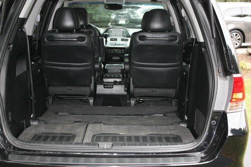 | All Odysseys get a 3.5L V6, the same engine that's in Honda's Ridgeline. On the base Odyssey, it puts out 244 horsepower and 240 lb-feet of torque, and is mated to a five-speed automatic transmission. The Odyssey features plenty of minivan comfort features such as dual sliding doors, a retractable center tray table, and beverage holders galore. Remote keyless entry is standard, as is a folding third-row seat, which Honda calls "Magic Seat" because it folds into the floor with one smooth motion. Safety features include anti-lock brakes and side-impact air bags with a roll-over sensor.The upgraded EX model motorizes the dual sliding doors and adds a second-row "Plus-One" removable seat to increase the passenger capacity to eight. Tri-zone climate control is also part of the package.On the EX-L and Touring models, Honda adds variable cylinder management technology, which turns off three cylinders at cruising speed. The EX-L model's i-VTEC variable valve timing system doesn't increase power output, but the torque does come on slightly sooner, improving engine response. The Odyssey is no sports car, but at 8.6 seconds to 60 mph, it merges like a smaller car.The EX-L utilizes an active noise cancellation system that uses the vehicle's stereo to cancel wind and road noise in order to create an even quieter ride. A power sunroof, leather seat trim and steering wheel, are also upgrades included on the EX-L.The Touring models gain XM satellite radio. This Touring model includes front and rear parking sensors, a programmable trip computer, a rear-seat DVD entertainment system with a nine-inch drop-down display, wireless headphones, and a navigation system. |
