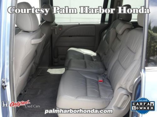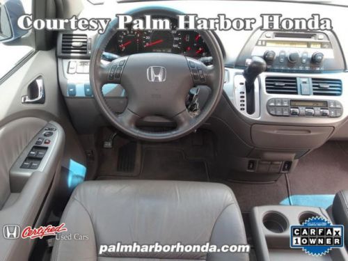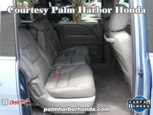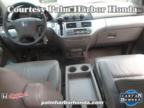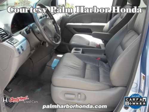 Courtesy Palm Harbor Honda is a Honda Authorized Certified Pre-owned dealer. Our commitment to customer service is second to none. We invite you to come in and experience it for yourself. We take pride in offering our customers a complete service history and Car Fax on every vehicle. This 2010 HONDA ODYSSEY won't last long so be sure to call us immediately to confirm availability and schedule a test drive. We are located at 31200 US Hwy 19 North in Pam Harbor FL 34684. **Price excludes tax, tag, dealer installed options, $98 private tag agency fee and $699.00 pre-delivery service fee. At Palm Harbor Honda, we strive to be the very best. We have the largest selection of Certified and non-Certified Pre-owned Hondas in the Bay Area, as well as all other brands of cars, trucks and SUVs that you may be looking for. Call our Internet Department for special pricing @ 888-459-7259.