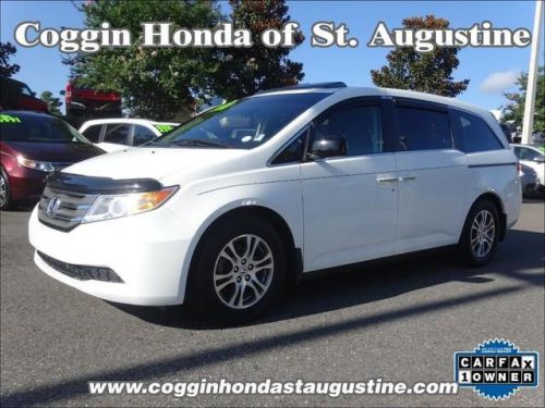 NEW ARRIVAL! -TIRES ROTATED & BALANCED, TRANSMISSION SERVICED, AND MULTI-POINT INSPECTED- PRICED BELOW MARKET! THIS ODYSSEY WILL SELL FAST! -BLUETOOTH, HEATED FRONT SEATS, LEATHER SEATS, 3RD ROW SEATING, AND SUNROOF / MOONROOF- -CARFAX ONE OWNER- -POPULAR COLOR COMBO- Please call to confirm that this Odyssey is still available! Call us today to schedule a hassle-free test drive! We are located at: 2925 US Highway 1 South, St. Augustine, FL 32086. **Price excludes tax, tag, dealer installed options, $98 private tag agency fee and $699.00 pre-delivery service fee. Coggin Honda of St. Augustine is committed to providing a world class experience for all of our clients. Built on the the principles of genuine care and personal service, we want everyone to see why Coggin Honda of St. Augustine is the premier Honda Pre-Owned dealer in all of Florida! We offer the best selection and value anywhere! 110-point inspection and Carfax on every vehicle!