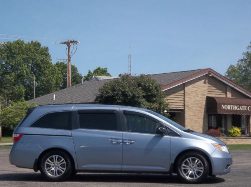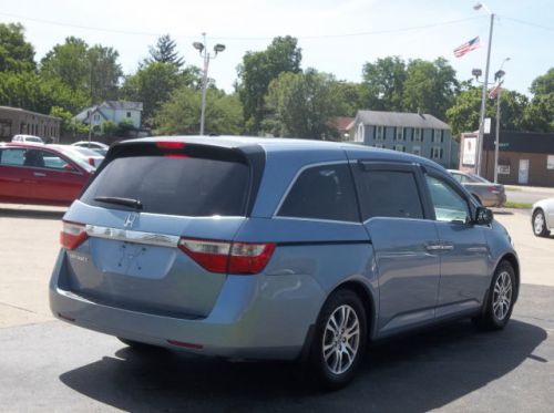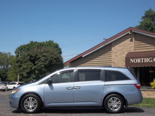 A CARFAX INDIANA ONE OWNER ODDESSY EX-L WITH ONLY 11,600 ACTUAL MILES, SUNROOF, HEATED LEATHER SEATS, BACK UP CAMERA, XM SATELITE RADIO, POWER SIDE DOORS, POWER REAR DOOR, LOADED UP AND SHARP!!! This 2012 Honda Oddessy EX-L is just like new condition both inside and out. Serviced, inspected, and a spotless Indiana one owner Carfax history report, this Oddessy comes with the remainder of the manufacture's 3 year or 36,000 mile bumper to bumper warranty as well as the 5 year or 60,000 mile powertrain coverage. Celestial Blue Metallic, Slate Gray leather interior, dark tinted privacy glass, aluminum sport wheels, all season tires. Loaded with options including a power sliding sunroof with sunroof shade, genuine leather interior, the 8 passenger seating arrangement consistings of 4 reclining captain seats with a middle row removable jump seat and a divided and fold down 3rd row seat, dual power front seats with driver's side lumbar, heated front seats, rear air and heat, back up camera, power sliding side doors, power lift and close rear door, remote keyless entry with alarm, trip odometer, trip computer, compass, outside temperature readout, driver information center, oil life and tire pressure monitors, Bluetooth phone feature, homelink garage door openers, clock, power windows and door locks, leather wrapped tilt and telescoping steering wheel, cruise control, air conditioning, XM satelite radio, am/fm stereo, cd player, steering wheel radio controls, remote controlled and heated outside rear view mirrors, daytime driving lights, automatic headlamps, multi speed delay windshield wipers, rear window defroster, rear window wiper and washer, and much more. Good gas mileage and powerful 3.5 Litre fuel injected V6 engine, automatic transmission, traction control system, dual frontal air bags, frontal side impact air bags, side curtain air bags, anti lock brakes. Just like new condition both inside and out, a gorgeous Honda Oddessy EX-L Van. Absolutely the best selection of late model, low mileage cars, trucks, vans, and sport utility vehicles anywhere, like new pre-owned vehicles at used car prices...call 866-779-8263 or visit us at www.prettycarsatnorthgate.com