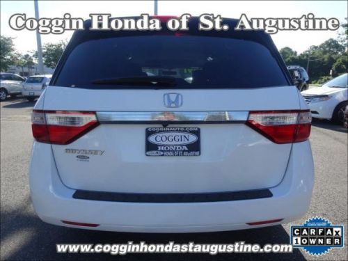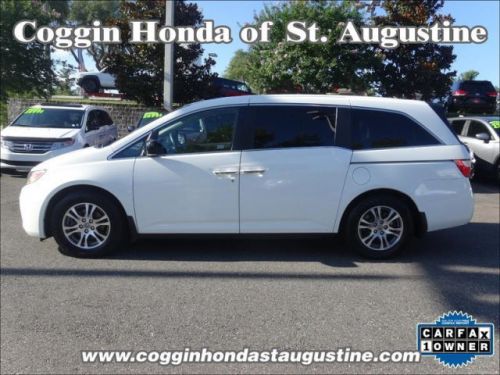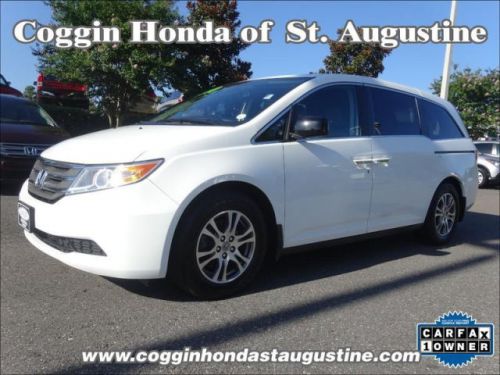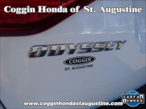 -New Arrival- -NEW CABIN AIR FILTER, NEW WIPER BLADES, AND TRANSMISSION SERVICED- -Priced Below The Market Average- Heated Front Seats, Leather Seats, and Sunroof / Moonroof -Carfax One Owner- This White 2013 Honda Odyssey EX-L is priced to sell fast! This Odyssey has a very popular White exterior color with a Truffle interior that looks fantastic! Coggin Honda of St. Augustine prides itself on value pricing its vehicles and exceeding all customer expectations! The next step? Give us a call to confirm availability and schedule a hassle free test drive! We are located at: 2925 US Highway 1 South, St. Augustine, FL 32086. **Price excludes tax, tag, dealer installed options, $98 private tag agency fee and $699.00 pre-delivery service fee. Coggin Honda of St. Augustine is committed to providing a world class experience for all of our clients. Built on the the principles of genuine care and personal service, we want everyone to see why Coggin Honda of St. Augustine is the premier Honda Pre-Owned dealer in all of Florida! We offer the best selection and value anywhere! 110-point inspection and Carfax on every vehicle!