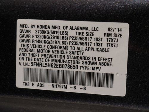 VIN (Vehicle Identification Number): 5FNRL5H62EB078650