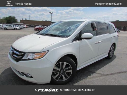 This 2014 Honda Odyssey 5dr 5dr Touring Van features a UNSPECIFIED 6cyl Gasoline engine. It is equipped with a Automatic transmission. The vehicle is WHT DIAMOND PRL with a TRUFFLE LEATHER SEAT Leather interior. It is offered with a full factory warranty. - Sunroof, 3rd Row Seat, NAV, DVD, Heated Leather Seats, Alloy Wheels, Quad Seats, Overhead Airbag, Top Dollar for all trade-ins! Have your car appraised today! Touring trim. READ MORE!KEY FEATURES INCLUDELeather Seats, Third Row Seat, DVD, Navigation, Sunroof, Quad Bucket Seats, Power Liftgate, Rear Air, Heated Driver Seat, Back-Up Camera, Satellite Radio, iPod/MP3 Input, Bluetooth, CD Player, Aluminum Wheels Rear Spoiler, MP3 Player, Power Third Passenger Door, Rear Seat Audio Controls, Dual Zone A/C. Top Dollar for all trade-ins! Have your car appraised today! VISIT US TODAYYou can expect this Honda dealership to continue providing the exceptional, award-winning level of service our community anticipates and deserves. Penske Promise - If you are not satisfied with your Penske purchase you can return it to Penske Honda within 3 business days from the date. Please call 877-261-3999. * Based on 2014 EPA mileage estimates. Use for comparison purposes only. Do not compare to models before 2008. Your actual mileage will vary depending on how you drive and maintain your vehicle. Please confirm the accuracy of the included equipment by calling us prior to purchase. - Leather Interior Surface - Contact Internet Sales at 877-261-3999 or zmcvicker@penskeautomotive.com for more information. - Print this page and bring it in and save an additional $200. You must present to the Internet Department to receive the additional $200. Prices do not include destination charges. Cannot be combined with any other offer. You must present to the Internet Department to receive the additional $200.