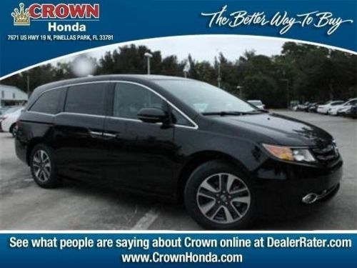 , Before Discount:$45,280.00, Dealer Discount:($4,032.00), Internet Price:$41,248.00, Total Savings:($4,032.00)!BACK-UP CAMERA, LEATHER, NAVIGATION, BLIND SPOT MONITOR, BLUETOOTH, MOONROOF, MP3 Player, CHILD LOCKS, 3RD ROW SEAT, KEYLESS ENTRY, 28 MPG, HID HEADLIGHTS, SAT RADIO, POWER LIFTGATE, The 2014 Honda Odyssey has a wide, low stance with a modern aerodynamic feel. Its fresh, angled lines, and lightning bolt styling on the side, combined with 2014 updates to its front end, grille, and rear taillights result in a bold overall design. Take into consideration its great records for reliability and safety combined with fact that it is enjoyable and comfortable to drive, and this is one vehicle should not be missed. On the inside, the Honda Odyssey provides abundant seating and cargo space. Depending on the trim level you select, it can seat up to 7 or 8 passengers. The third row seats are split, and each seat can fold flat into the floor. The outside seats in the second row can slide towards the walls, so that three child safety seats can fit next to one another. The Multi-Function 2nd-Row Center Seat, on EX trims and above, can either fold forward to become a center console or slide forward 5.5 inches to enable a child seat to be closer to the driver and front passenger. For extra cargo space, one or all of the second row seats can be removed as well. Powering the 2014 Odyssey is a 3.5-Liter V6 engine, with 248 Horsepower, which gets an EPA estimated 19 MPG City and 28 MPG Highway. New for 2014, all trims now come standard with a 6-speed automatic transmission. The base Odyssey, comes standard with such items as a rearview camera, an AM FM CD Radio with 7 speakers and a color 8-inch interface screen, Bluetooth connectivity, and power front seats. Higher trims come with features like power sliding doors, LaneWatch camera system, navigation, 3-zone climate control, leather, and a power lift tailgate. The top-of-the-line Touring Elite trim gives you things like the amazing Honda DVD Ultrawide Rear Entertainment System, and a premium 12 speaker sound system with surround sound. For 2014, the Touring Elite also gives you the convenience of the innovative HondaVac, which is a vacuum cleaner integrated with the car to help fight day-to-day messes. Crown Automotive Group serving Tampa Bay Florida offers great low prices, rebates and incentives for new Group & used Group cars, vans and SUVs to all of our neighbors in St. Petersburg, Largo, Clearwater, and Pinellas Park. Our Expert Service & Parts staff assist our Florida customers keep their Group vehicles in great shape.