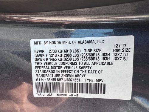 VIN (Vehicle Identification Number): 5FNRL6H71JB071651
