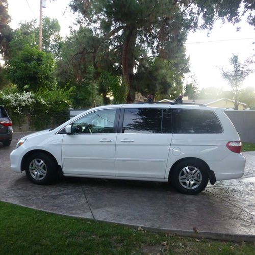 2007 Honda Odyssey EX-L 4dr Minivan (3.5L 6Cyl) with Taffeta White, Ivory Interior. Loaded with 3.5L V6 SOHC 24V Engine, Leather Seats, 8 Passenger Seating, Third Row, Heated Front Seats, Power Driver Seats, Power Glass Moonroof, Leather Steering Wheel Trim, Cruise Control, AM/FM/CD Audio System, Navigation System, Rear View Camera, DVD Entertainment System, Power Windows, Power Door Locks, Power Exterior Mirrors, Roof Rack, 16 Inch Alloy Wheels and more. |