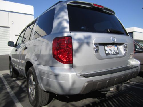 This auto is a 2004 Honda Pilot EX-L, 4 Door Wagon/Sport Utility with a 3.5L V6 PFI SOHC engine, and all wheel drive with the Tow Package.. It is Silver with a dark grey interior. It is in good condition barring some minor dings and scratches common in a 10 year old car. The interior is in good condition and has 3 rows of leather seats. The car had a new transmission installed in 2006 at 90,000 miles. This car is mechanically sound. It is a 2 owner car and the Car Fax is clean. All scheduled maintenance, All records, Fully loaded with all the goodies, Looks & drives great.